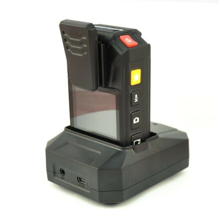 В данной модели нагрудного регистратора имеется штатное зарядное устройство, которое поставляется в комплекте. Чтобы зарядить регистратор просто установите его на зарядный подиум и подключите зарядное устройство. В комплекте поставляется три варианта зарядной гарнитуры: USB, зарядное в прикуриватель авто 12V, и зарядный блок питания 220 V.