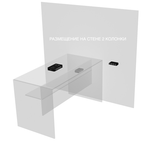 На рисунке показан пример оптимального размещения подавителя и двух внешних УЗ-колонок при их совместном использовании