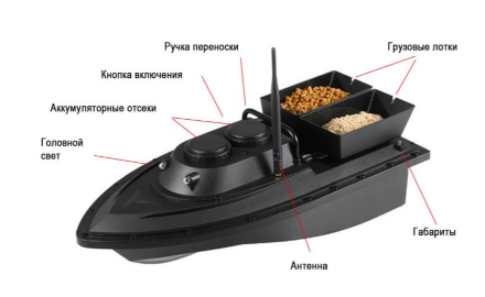 Комплектация: кораблик, антенна, ПДУ, ремешок для ПДУ, зарядное устройство для аккумулятора, аккумулятор