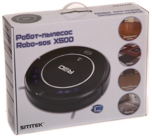 Фирменная упаковка имеет ручку, что позволяет удобно перенести робот-пылесос "Robo-sos X500"