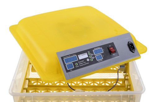 Большой инкубатор на 96 яиц, состоящий из двух секций, выполненных из прозрачного пластика. Оснащен автоматической системой управления с сигнализацией, которая удерживает влажность и температуру внутри корпуса в заданных пределах. Есть функция регулярного переворота яиц и вентиляции воздуха. Устройство питается от сети 220 В.